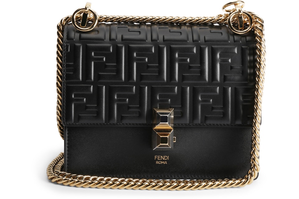 Fendi Kan I Crossbody Ff Small Black In Embossed Leather With Gold Tone